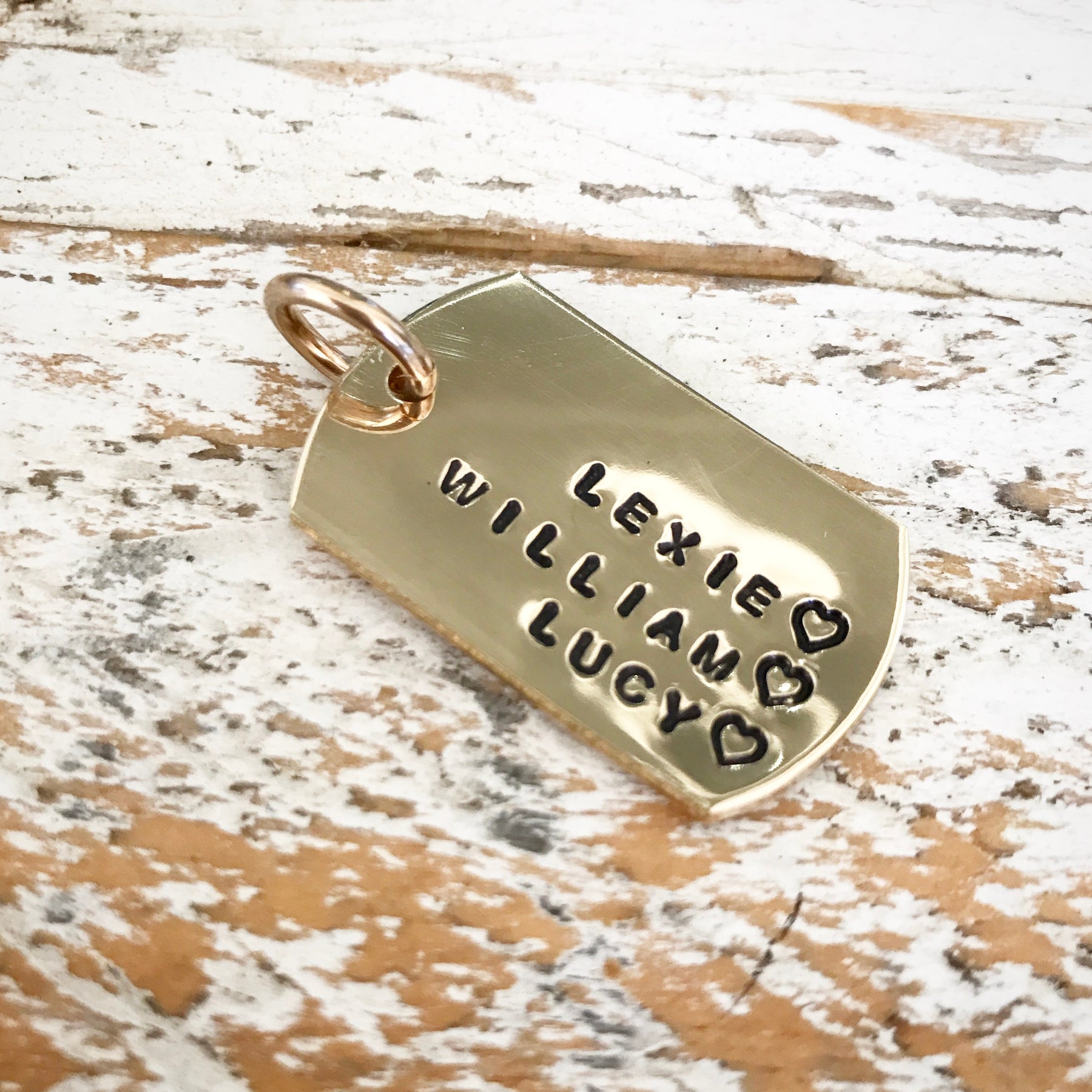 Crafted from 14ct Double Clad Gold Fill this simple Dog Tag Pendant has been designed as one of the pendant options when creating a "Mickelloo Journey Necklace".  The Mickelloo Journey Necklace is created by selecting 3 of the 1.25" Hand Stamped Pendants and combining them with separator beads and a long chain giving you one amazing Statement Necklace.  This necklace can be crafted in either Sterling Silver or Gold Fill or a mixture of both.