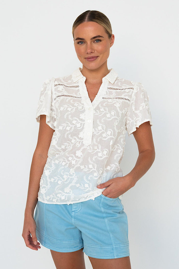 It's all in the details with the Valentina Shirt. Featuring floral embroidery with an added touch of broderie anglaise detail, this 100% cotton shirt delivers elegance and ease-of-wear in equal measure. Worn over a pair of jeans or paired with a casual short this is one shirt that enhances every outfit.