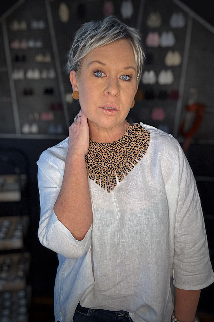 Designed to sit beautifully at the neckline, the Wagtail Bib Necklace echoes the shape of a feather’s edge, aligning seamlessly with our best-selling feather accessories. Named after the Willy Wagtail bird, it features a structured, feather-like finish that adds soft drama to any outfit.