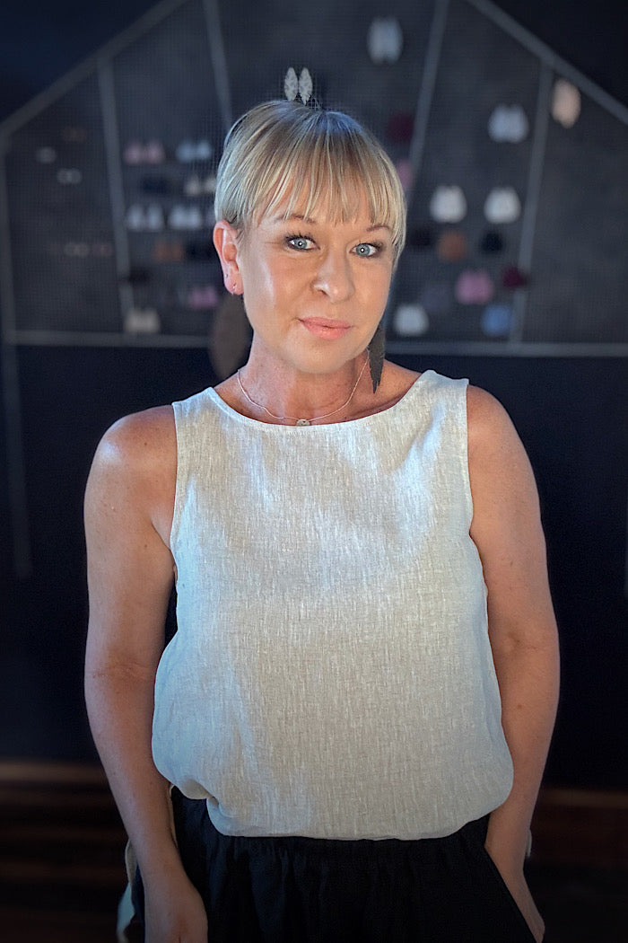 The Asher Top is crafted from breathable, lightweight pure linen in a fresh neutral. A timeless capsule essential, it works perfectly as a layering base or as a standalone tank.