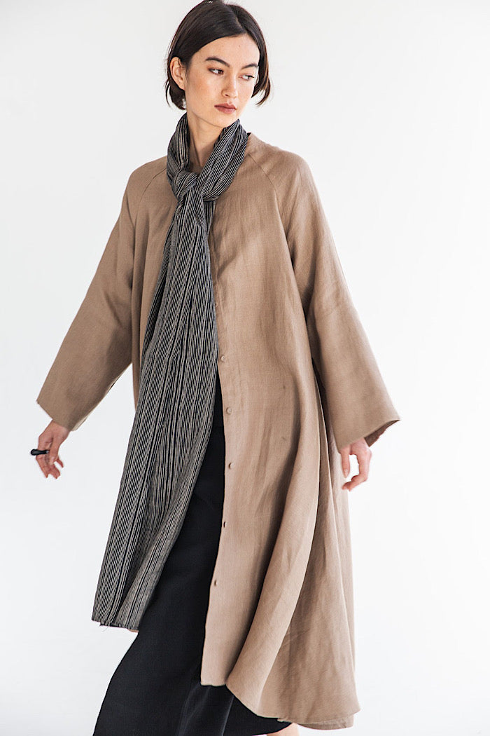 The Obi Scarf is crafted from this season’s signature pure linens offering breathability, softness, and warmth. Lightweight yet cosy, it offers the perfect balance for transseasonal layering.