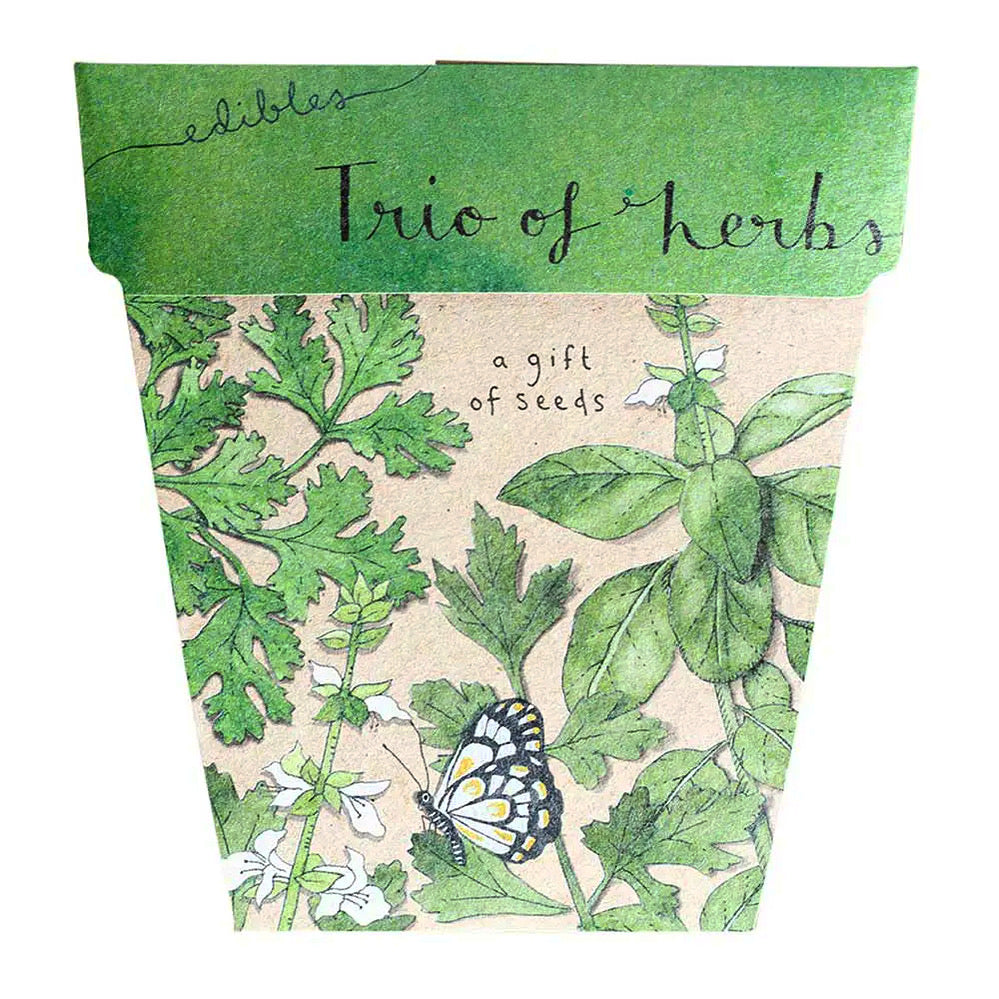 Introducing the redesigned Trio of Herbs Gift of Seeds, now a part of the ‘Edibles’ Gift of Seeds range. This pack includes a mix of parsley, coriander and basil, a perfect mix for the kitchen gardener! Each herb is easy to grow, and will blossom with love. This is both a beautiful card and a joyous experience to gift to someone in your life, or even yourself.