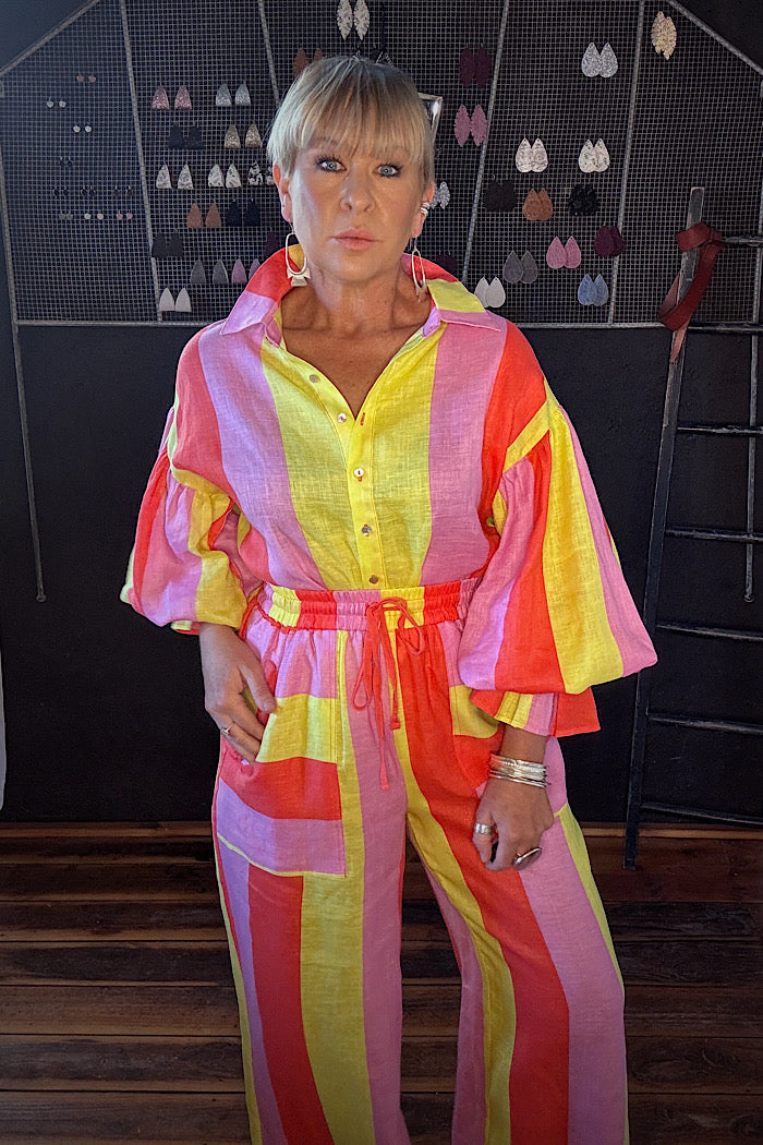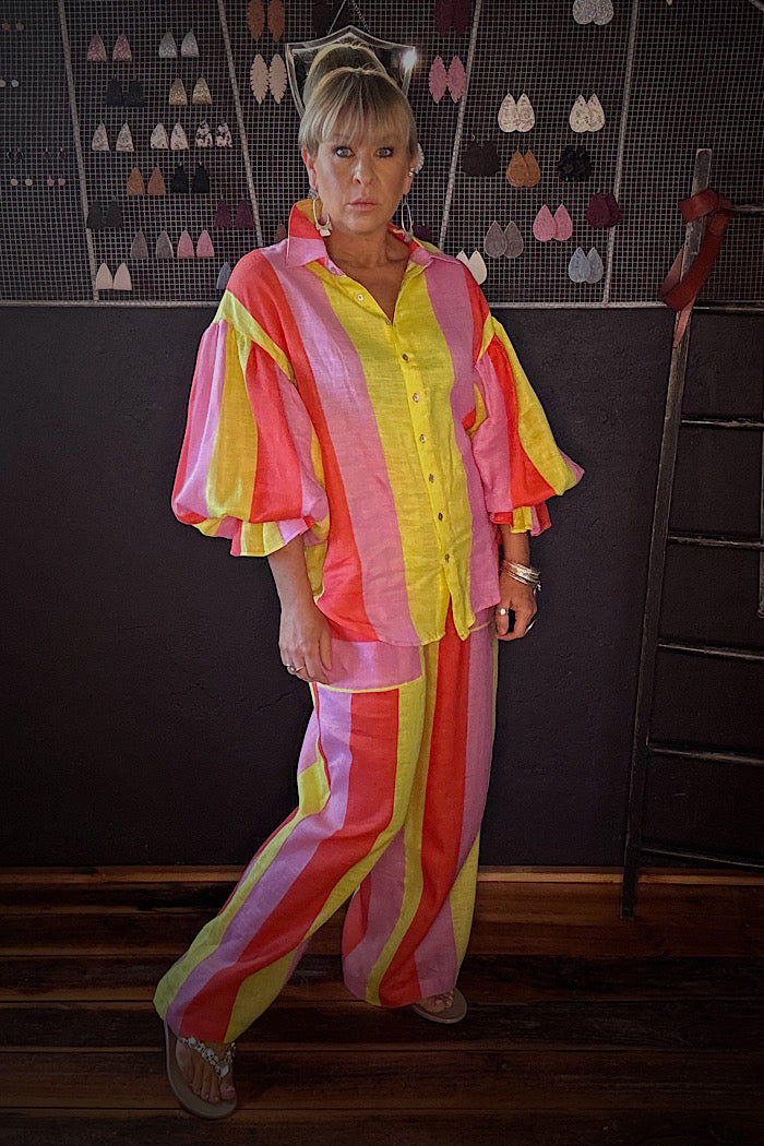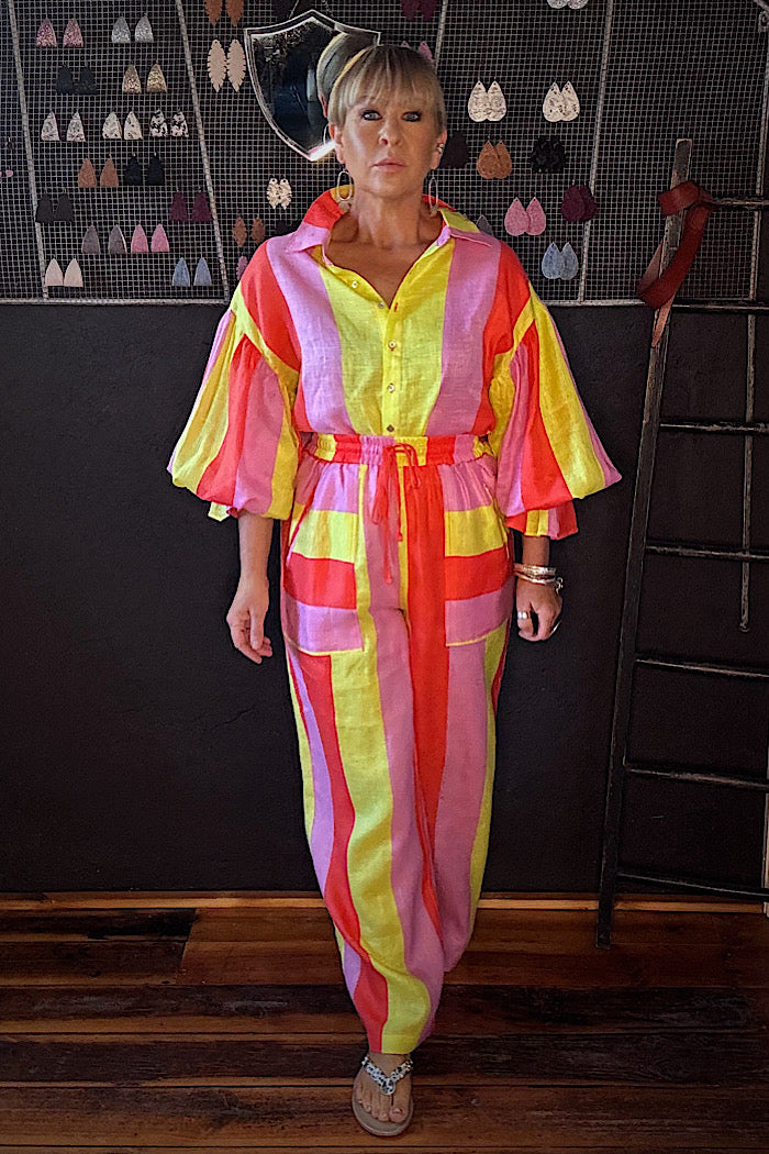 The Juno Pant in Candy Stripe brings a fresh, resort-luxe energy rto a silhouette LBG girls already know, love, and collect.