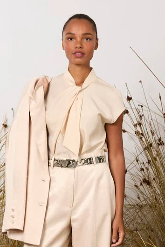Introducing our latest classic silk top for our timeless fashion lovers!  Nora will become a workhorse in your wardrobe, whether it be for work, dinner out or just a stylish look with jeans.  Featuring a drop shoulder and a tie feed through neckline.
