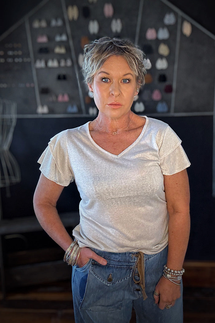 NORBERTA FLUTTER SLEEVE T-SHIRT - NATURAL