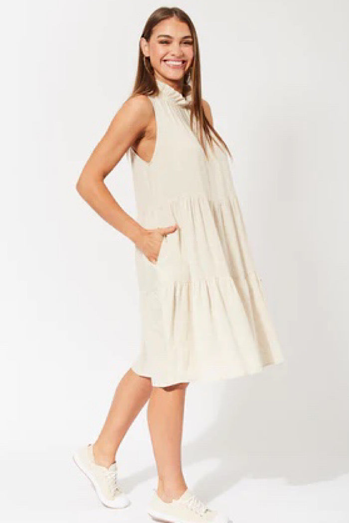 Revitalise your summer wardrobe with a new silhouette! The Belize Frill Dress is a reversible linen blend style that will extend your outfit options. Full of fun and feminine swing, this breezy mini dress brings you a casual elegance you can tailor to suit any occasion. Go glam with heels and bold accessories, or go for everyday cool with sneakers!