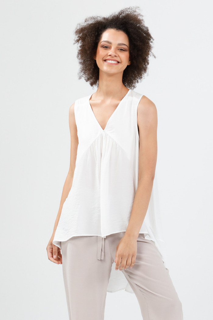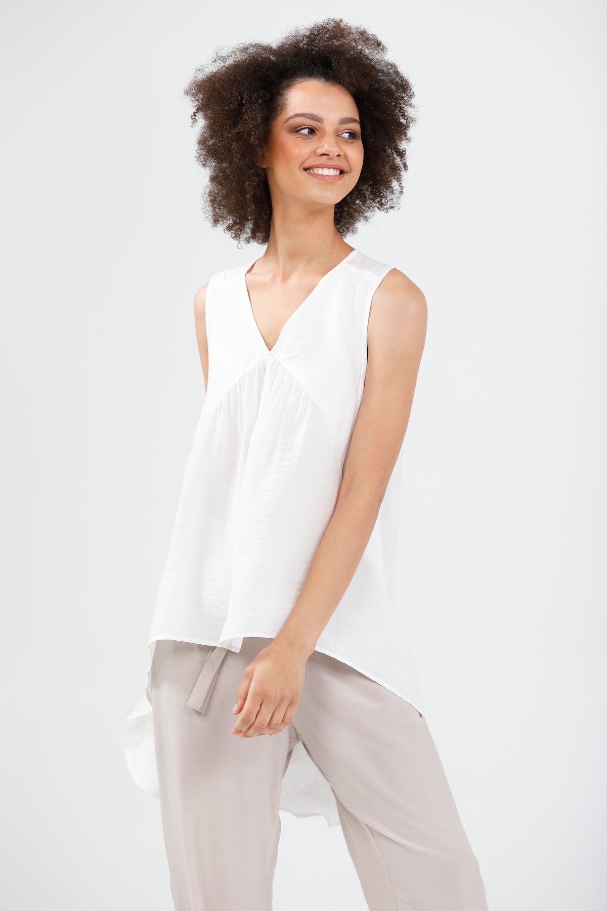 The Rambles Top is a quintissential easy-wear piece for sophisticated office-to-evening styling. Designed by and for the working woman. This style falls in gathers from under the bust in an a-line shape with a dramatic high-low hem. With effortless elegance and attention to detail, this modern piece radiates confidence and style.